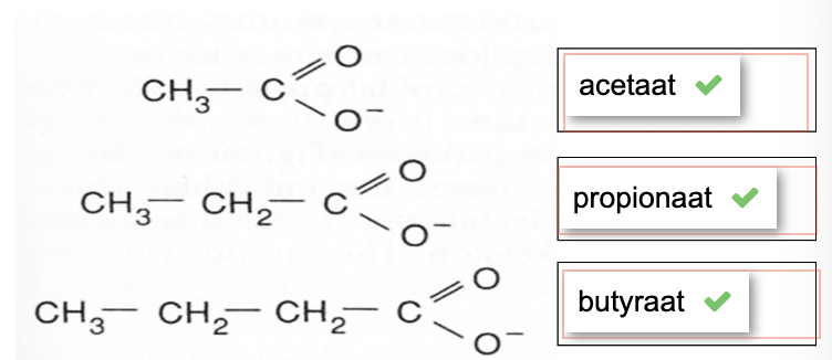 azijnzuur (acetic acid) = geconjugeerd zuur van acetaat (C2)