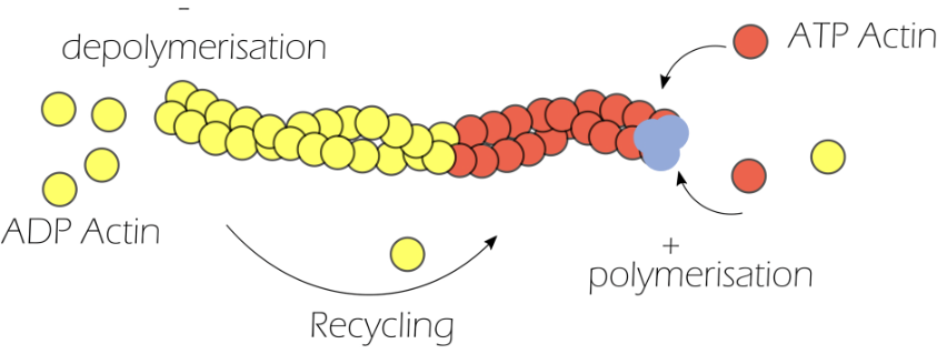 Actin polymerisation coupled with depolymerisation is known as actin treadmilling, resulting in a highly dynamic cytoskeleton