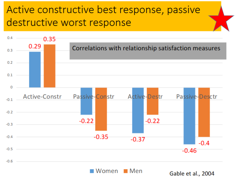 Only active-constructive responding is related to better relationships (e.g., satisfaction, trust, intimacy)