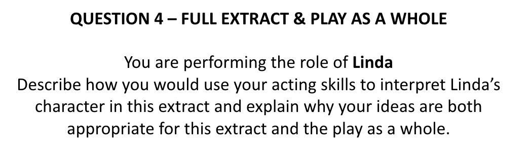 Treat each paragraph as an 8 marker; finding a quote from elsewhere providing context and what you aim to show about the character — then describe how you will deliver the line.