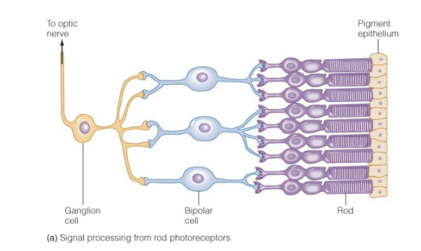 Cones in the fovea centrals connect to a single ganglion cell via a single bipolar cell