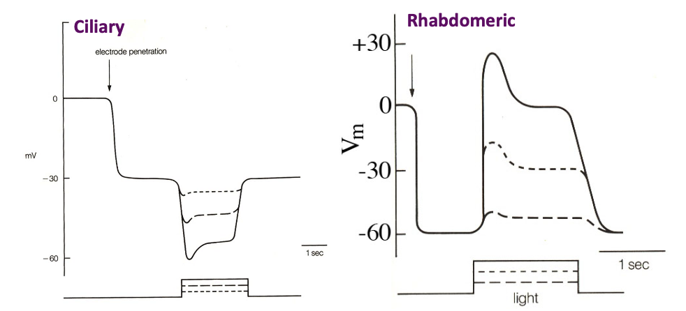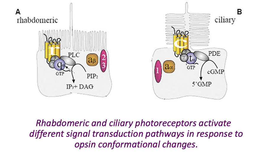 Rhabdomeric photoreceptors employ “R-opsins” which signal through Gq