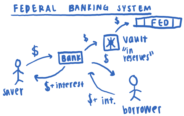 - federal reserve imposes a reserve requirement: a fraction of deposits needs to be in the reserves; excess reserves can be lent out to borrowers * if banks at the end of the banking day do not have enough in the reserve, they have to pay the Fed a fee * banks can borrow from other banks, must pay interest called federal funds rate * banks can borrow money directly from the fed, must pay interest called the discount rate * **discount rate is one percent higher than the federal funds rate to discourage banks from borrowing from the fed**