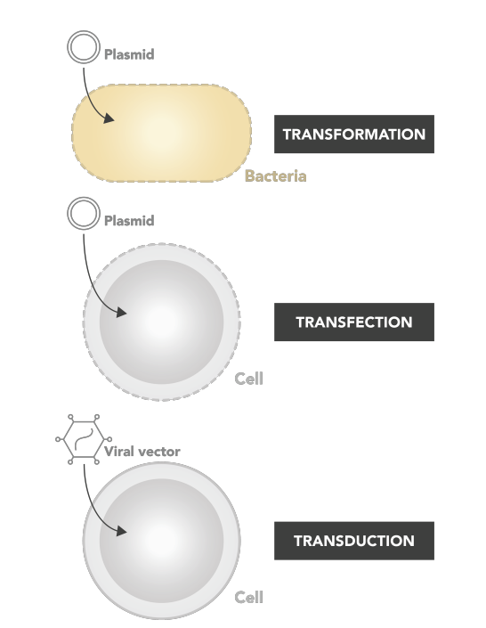 Transduction = A viral vector with foreign DNA introduced into another cell