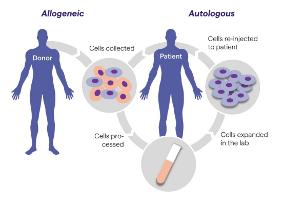 - When using patient’s own cells, no risk of graft-versus-host disease