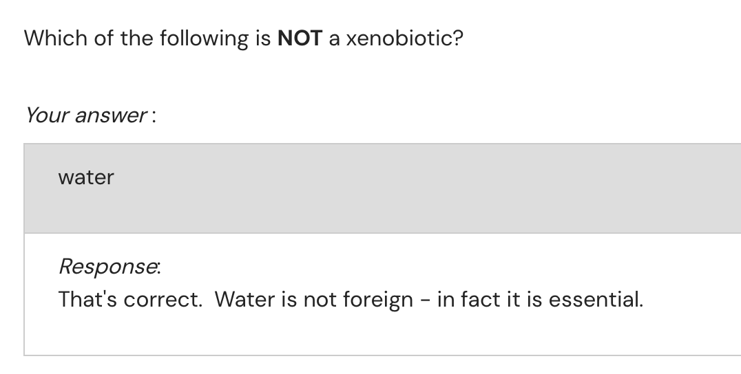 Adjective: foreign chemical not naturally produced by the organism/ecosystem.