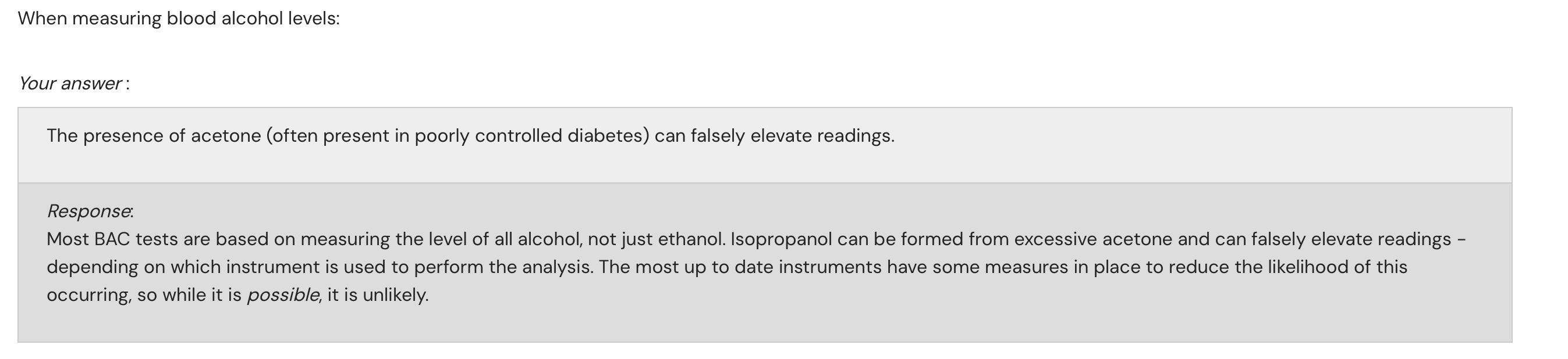 Endogenous acetone in diabetics falsely elevating breath alcohol devices.