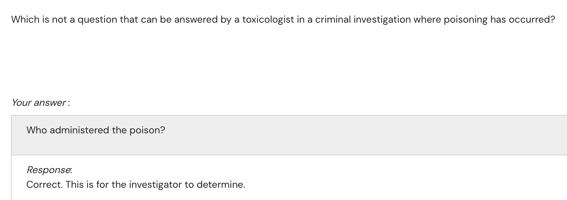 Hybrid field merging analytical chemistry with fundamental toxicology to answer legal (criminal + civil) questions surrounding intoxication and poisoning.