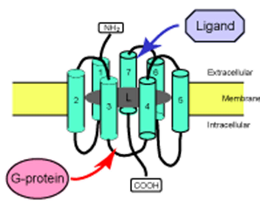 Structure: Seven transmembrane domains; activated by various ligands including hormones (adrenaline) and neurotransmitters (glutamate).