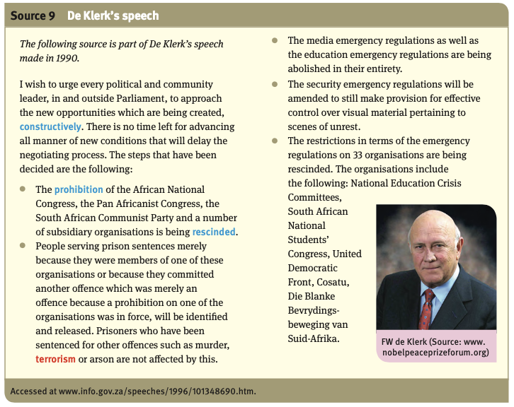 ♦︎ The apartheid government then said that it was now possible to make political changes, which it did when FW de Klerk announced the unbanning of the ANC and the release of Nelson Mandela in February 1990.