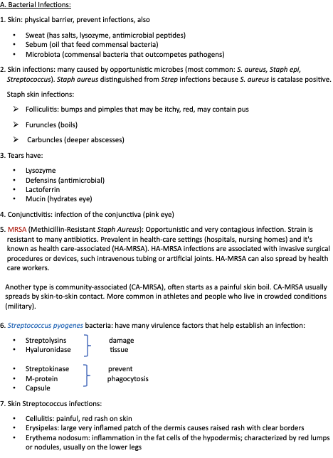 2. Skin infections: many caused by opportunistic microbes (most common: S. aureus, Staph epi,