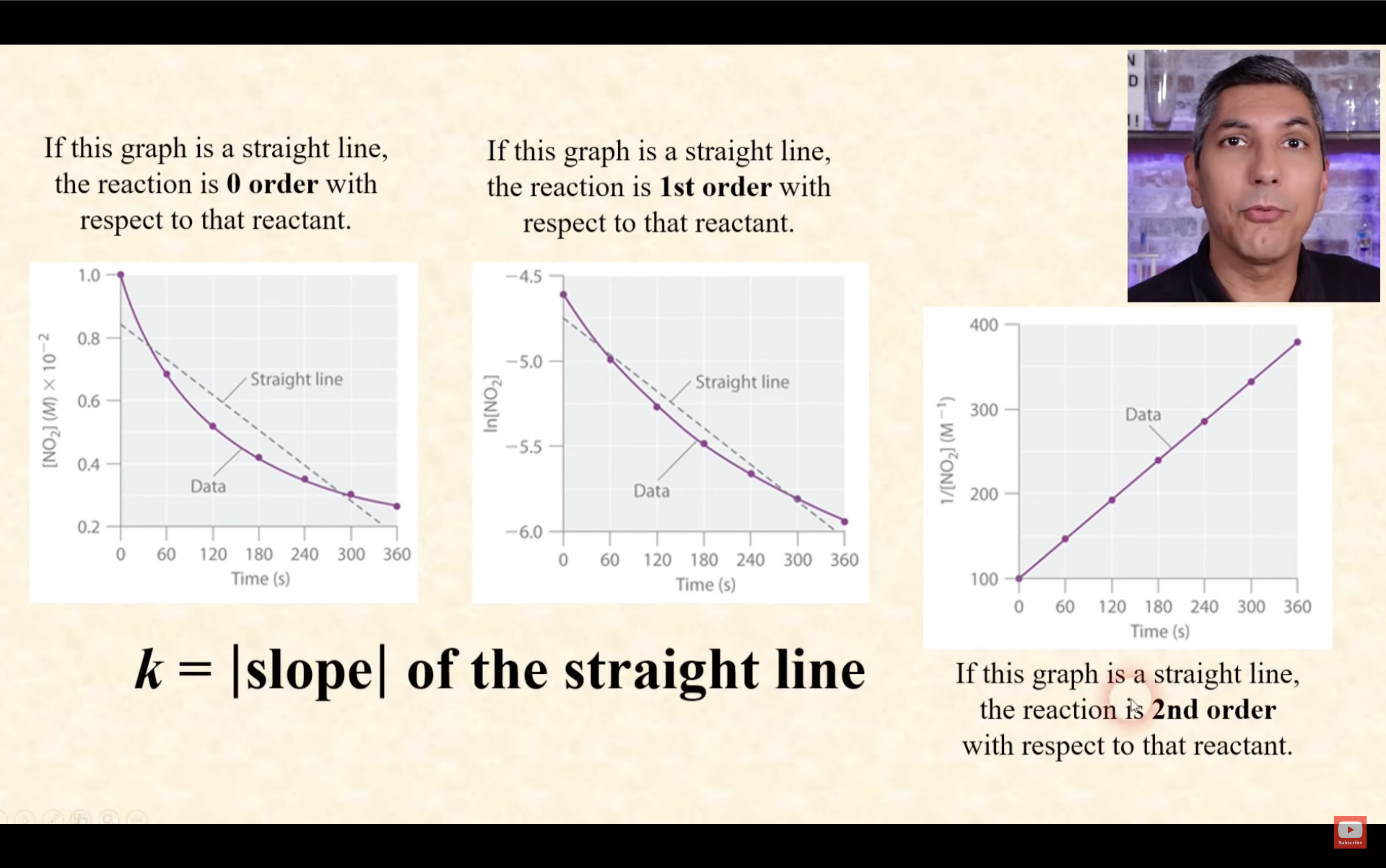 graphing the concentration of a reactant vs time allows us to determine the reaction order