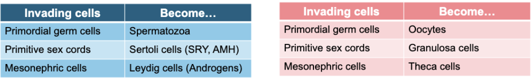 Primitive Sex Cords: Sertoli (express SRY) or Granulosa (female expression)