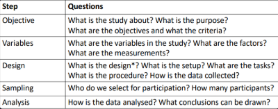 Once we know what our variables are, we can consider the design of the study. This includes: