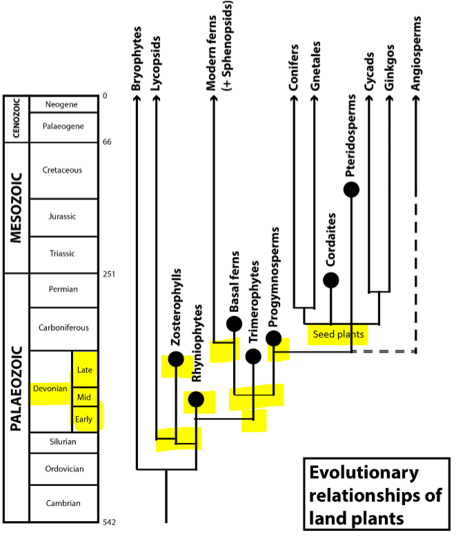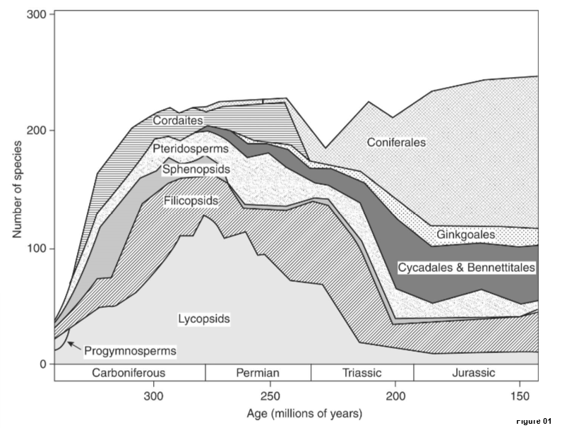 first seed plants, appeared at the end of the Devonian, diversified in the Carboniferous