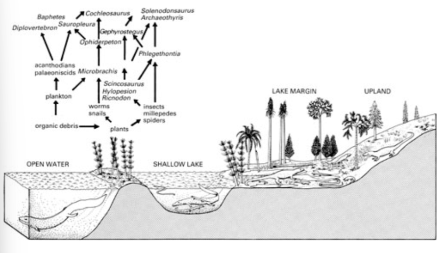 Carboniferous→ get diversification of different types of basal tetrapods, big branching points