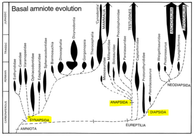 synapsids, anapsids and diapsids all appeared in the Carboniferous
