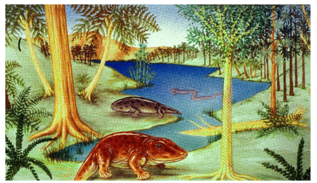 End Devonian→ icthyostega is found in Greenland (mostly aquatic), get Romer’s gap that is being filled up