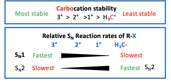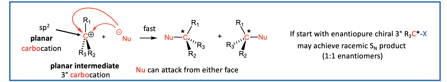 Also, with the release of steric strain, with loss of LG & the formation of carbocation, drives reaction forward “steric acceleration”