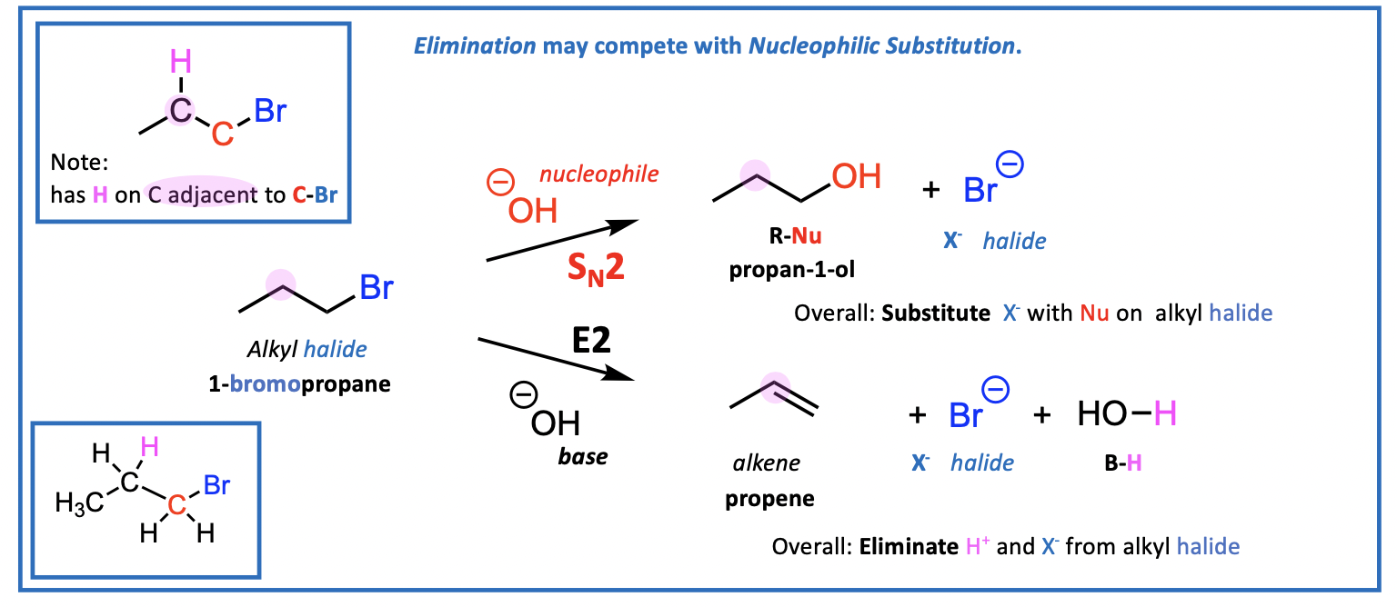 Competition may occur between Sn and elimination reactions