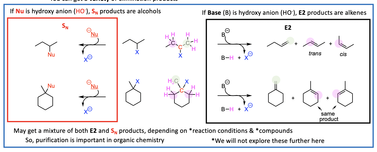 May get a mixture of both E2 and SN products, depending on reaction conditions & compounds