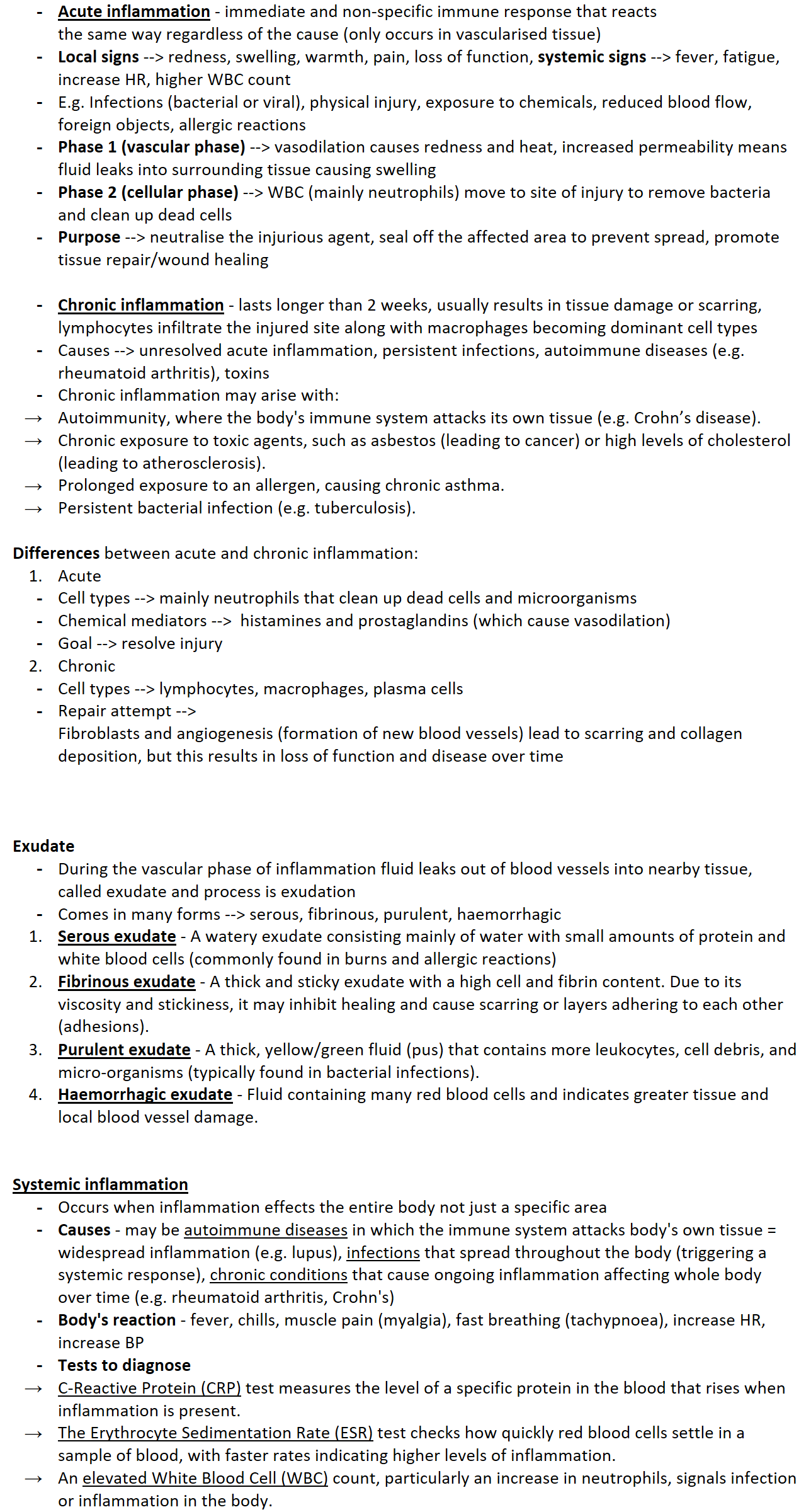 Causes - may be autoimmune diseases in which the immune system attacks body's own tissue = widespread inflammation (e.g. lupus), infections that spread throughout the body (triggering a systemic response), chronic conditions that cause ongoing inflammation affecting whole body over time (e.g. rheumatoid arthritis, Crohn's)