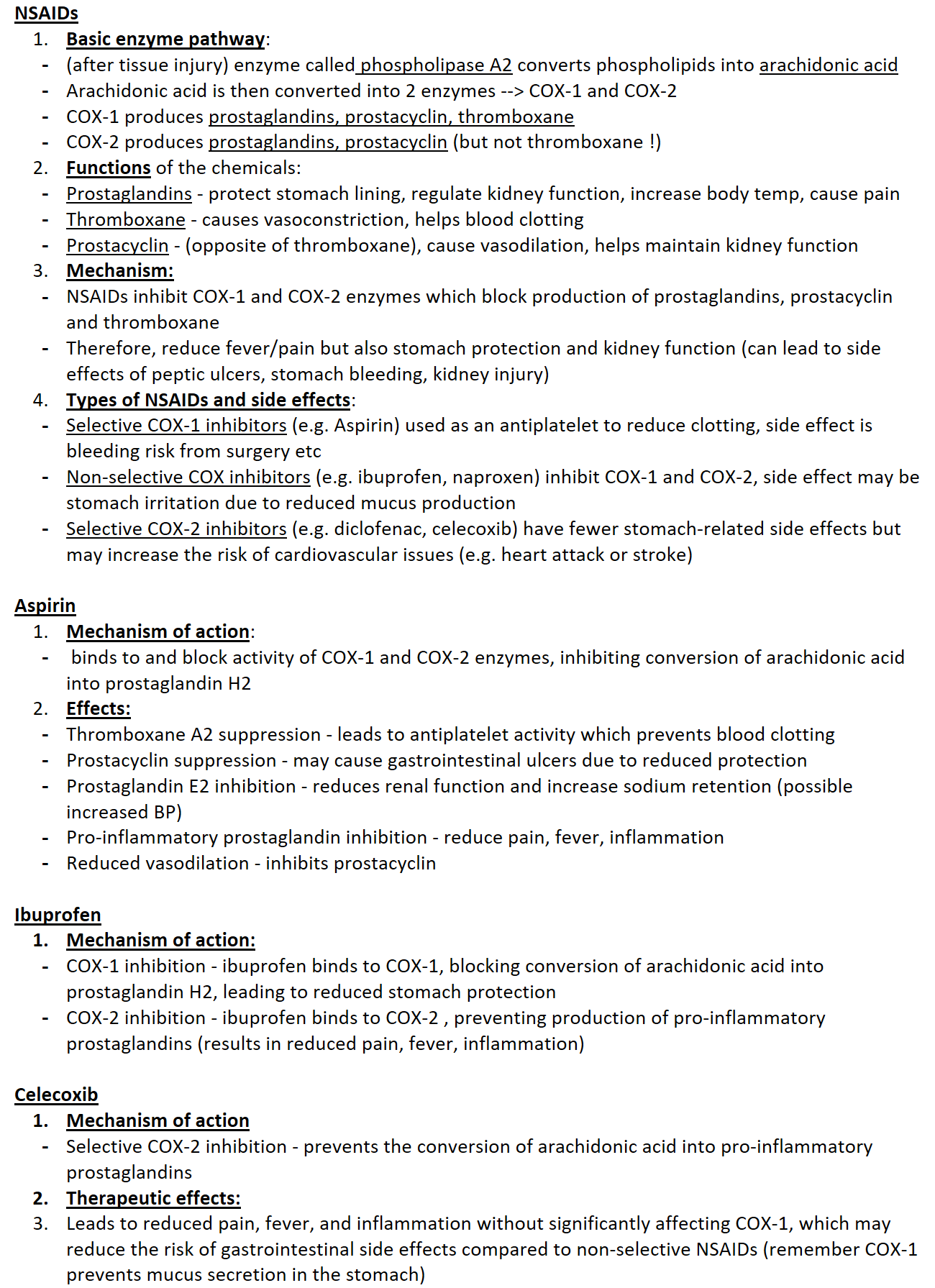 Non-selective COX inhibitors (e.g. ibuprofen, naproxen) inhibit COX-1 and COX-2, side effect may be stomach irritation due to reduced mucus production