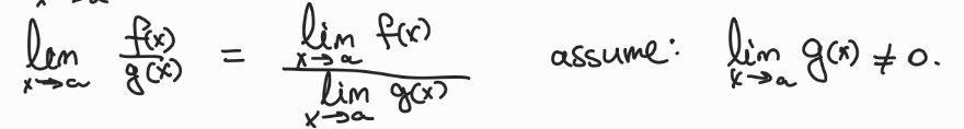f(x)/g(x) as long as g(a) ≠ 0