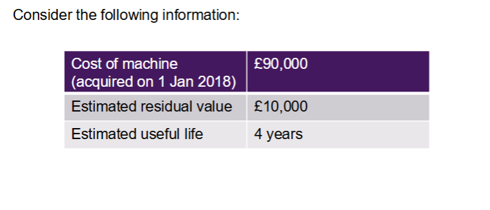 n asset, purchased two years ago for £100,000, has an estimated residual