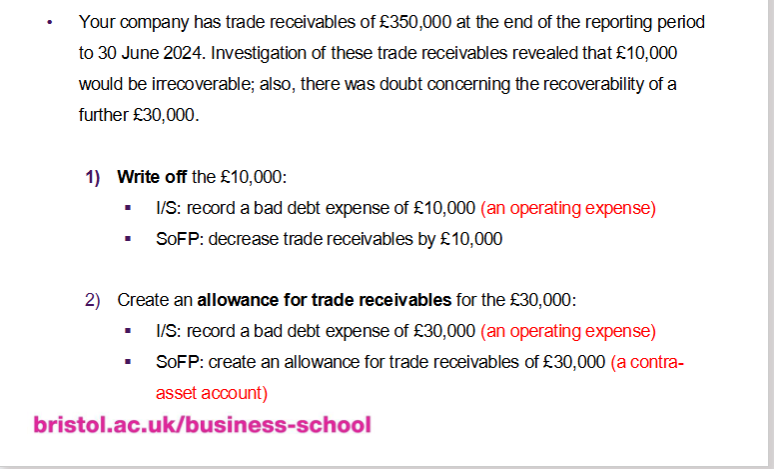 o Recorded as assets on the SoFP, usually current assets (i.e., expected to be
