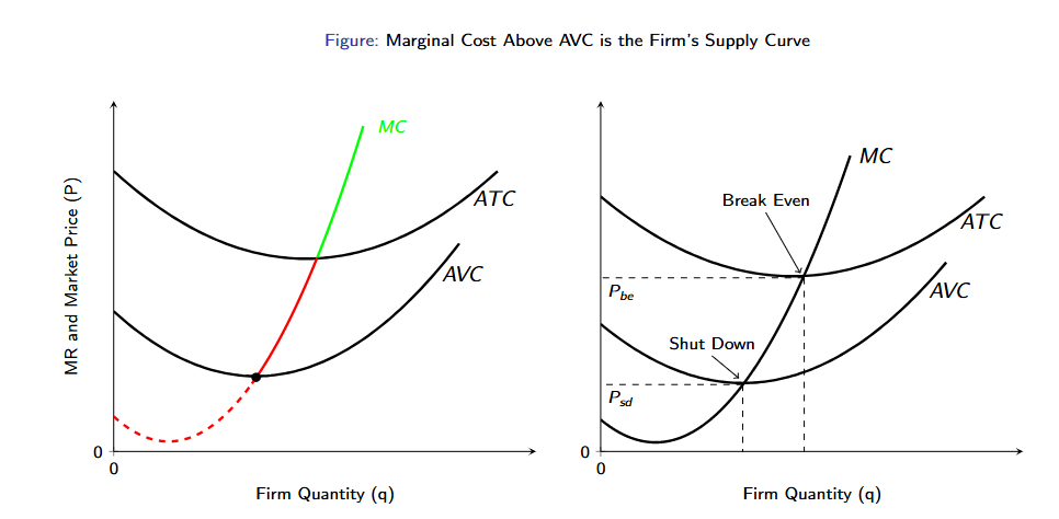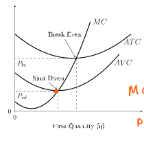 If price falls below average variable cost (AVC), the firm shuts down