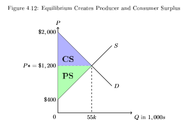 Total Economic Surplus (TES) = CS + PS —→ maximized at equilibrium