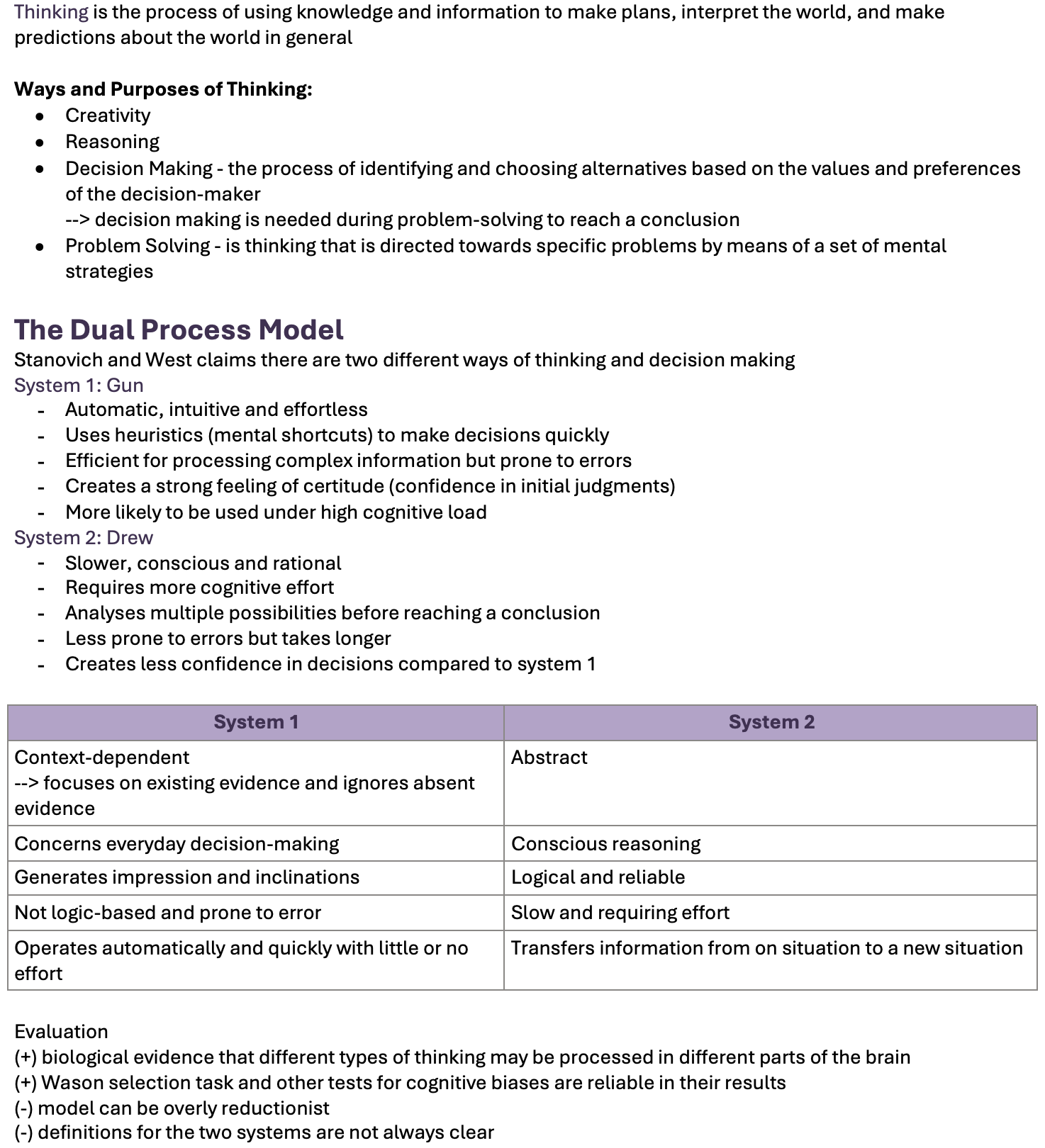 Thinking is the process of using knowledge and information to make plans, interpret the world, and make predictions about the world in general