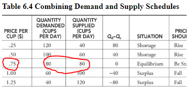 - Hence the shortage is eliminated at a price of 75 cents per cup