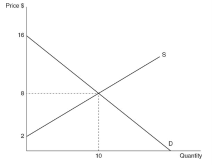 - Consumer surplus: ½ x 10 units wide x 8 units long = $40 surplus