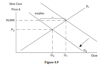 At equilibrium price of $4,000, there is now a surplus