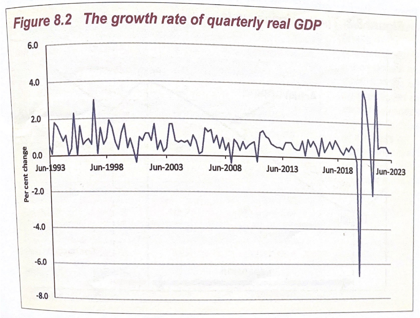 Different terminology would be used to describe this figure as it shows the fluctuations in real GDP that occur – quarterly GDP does not change at a constant rate.