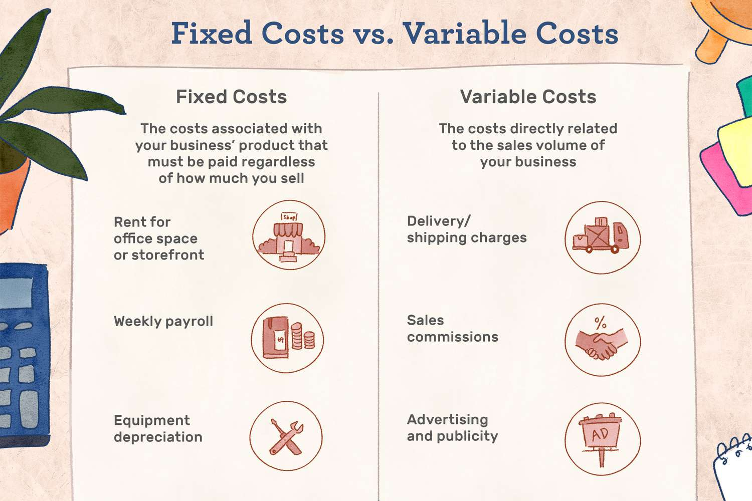 - Total cost = Fixed + Variable x Amount