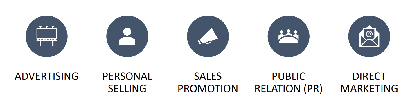 - %%Advertising%% : paid form of non-personal presentation and promotion of ideas, goods or services by an identified sponsors.