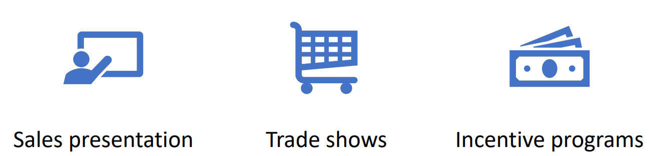 - %%Sale promotions%% : pricing strategy : short-term incentive to encourage the purchase or sale of a product or service