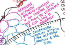 rocks and boulder lookin things on transcription diagram are all PROTEINS (Transcription Factors, TFs)