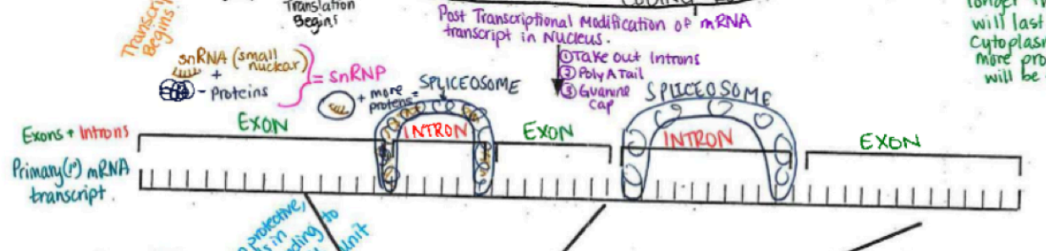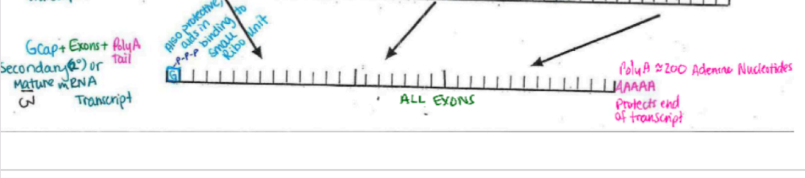 UTR + poly A tail, allows mRNA to exist in the cytoplasm longer → translate it for longer (remember multiple ribosomes on mRNA)