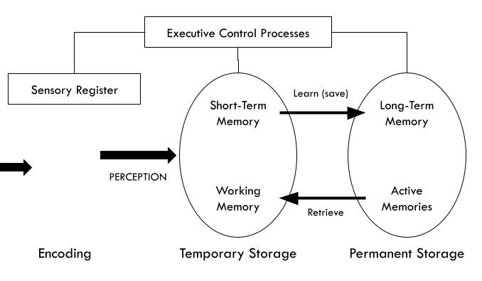 - When information first arrived, it is stored briefly in sensory memory, which held onto the input in “raw” sensory from