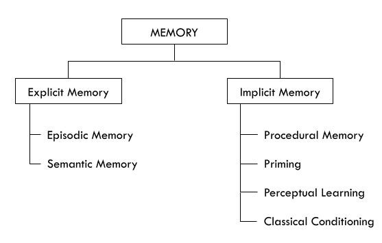 - Procedural Memory: knowing how (memory for skills)