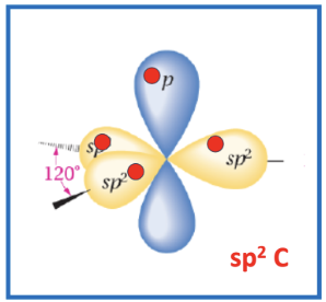 1 in each sp2 orbital forms sigma (s) bonds with neighbouring carbons with hydrogen