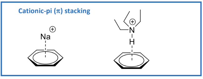 Areas in benzene can be electron-rich or electron-poor, leading to cationic-pi interactions