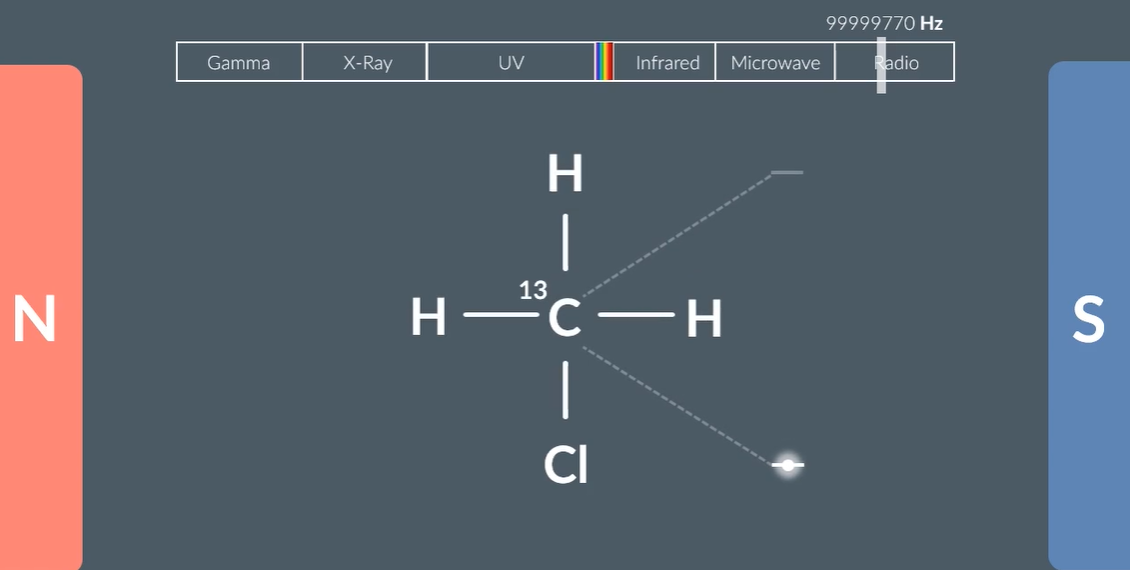 When carbon 13, placed between magnets the gap between the spin up and spin down is shown.