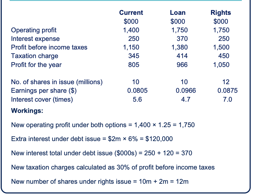 This is a particularly good ratio to use when evaluating a choice between debt and equity. If using debt leads to a low interest cover value, investors may feel that this represents too much of a risk.