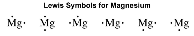 Lewis symbols represent the valence electrons as dots placed on the sides of the element symbol.