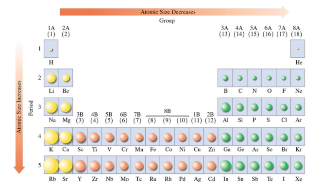 For representative elements: the atomic size increases going down a group but decreases going from left to right across a period.